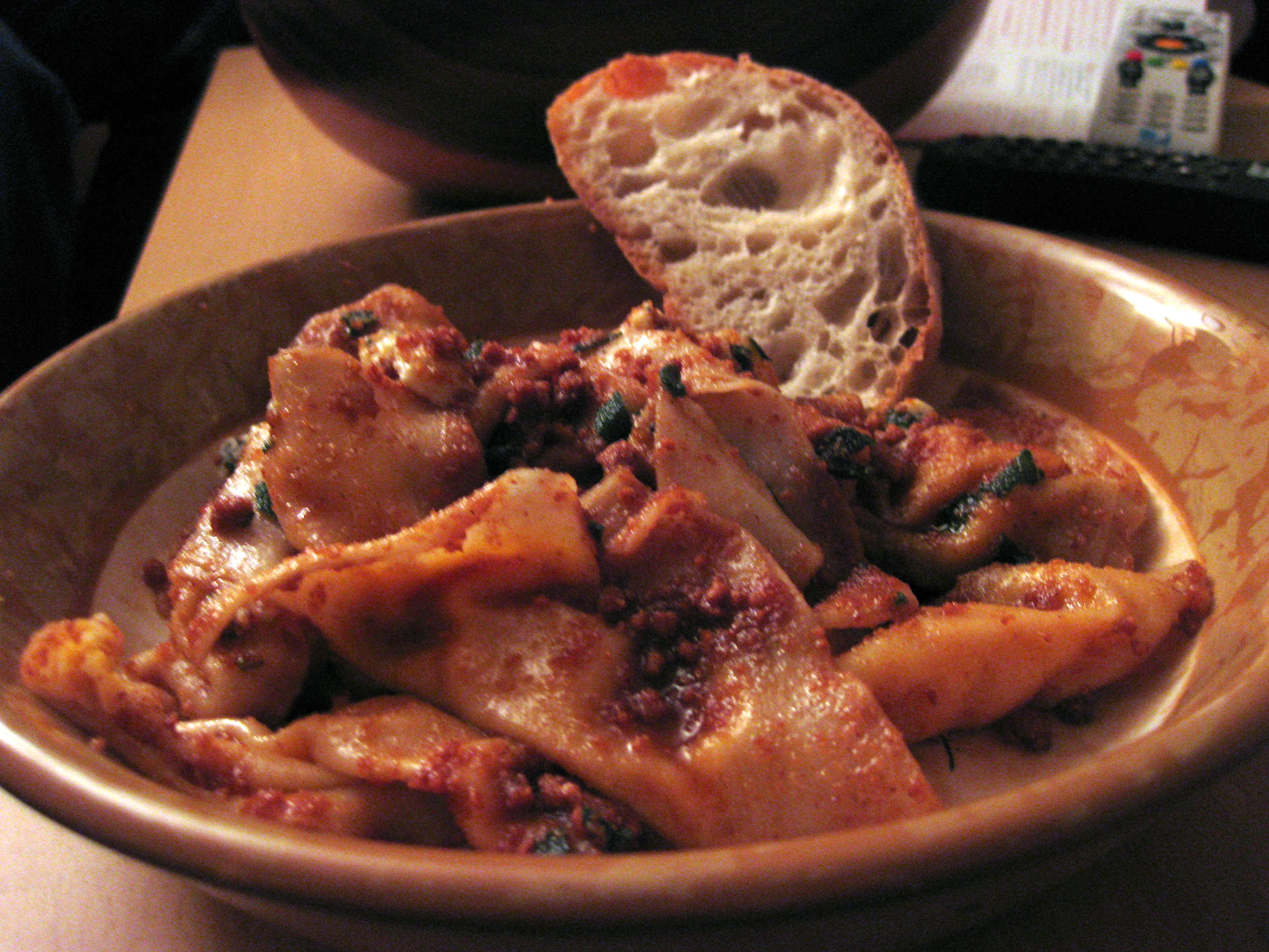 Pasta Piatti in Ashland is a favorite of mine, and I’ve mentioned it before. When N. and I had dinner there in celebration of our second wedding anniversary this past summer, I had their butternut squash ravioli in a brown butter sauce with sage, crumbled biscotti cookies, and “Oregonzola” cheese from Rogue Creamery. It looked like this: