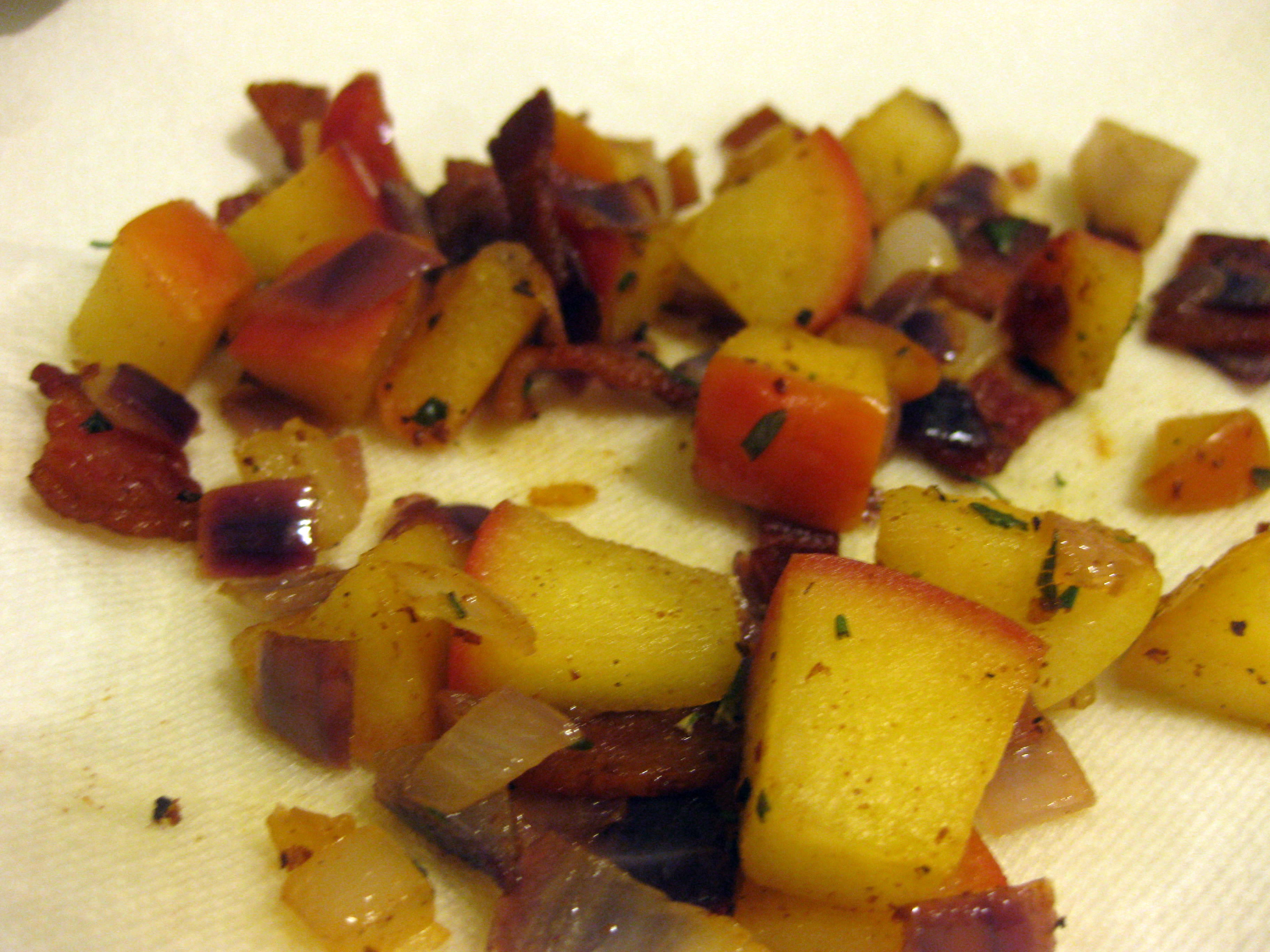 Bacon and apples sounded amazing and decadent, but I decided to add a little to Bittman’s foundation. Here’s what I used: