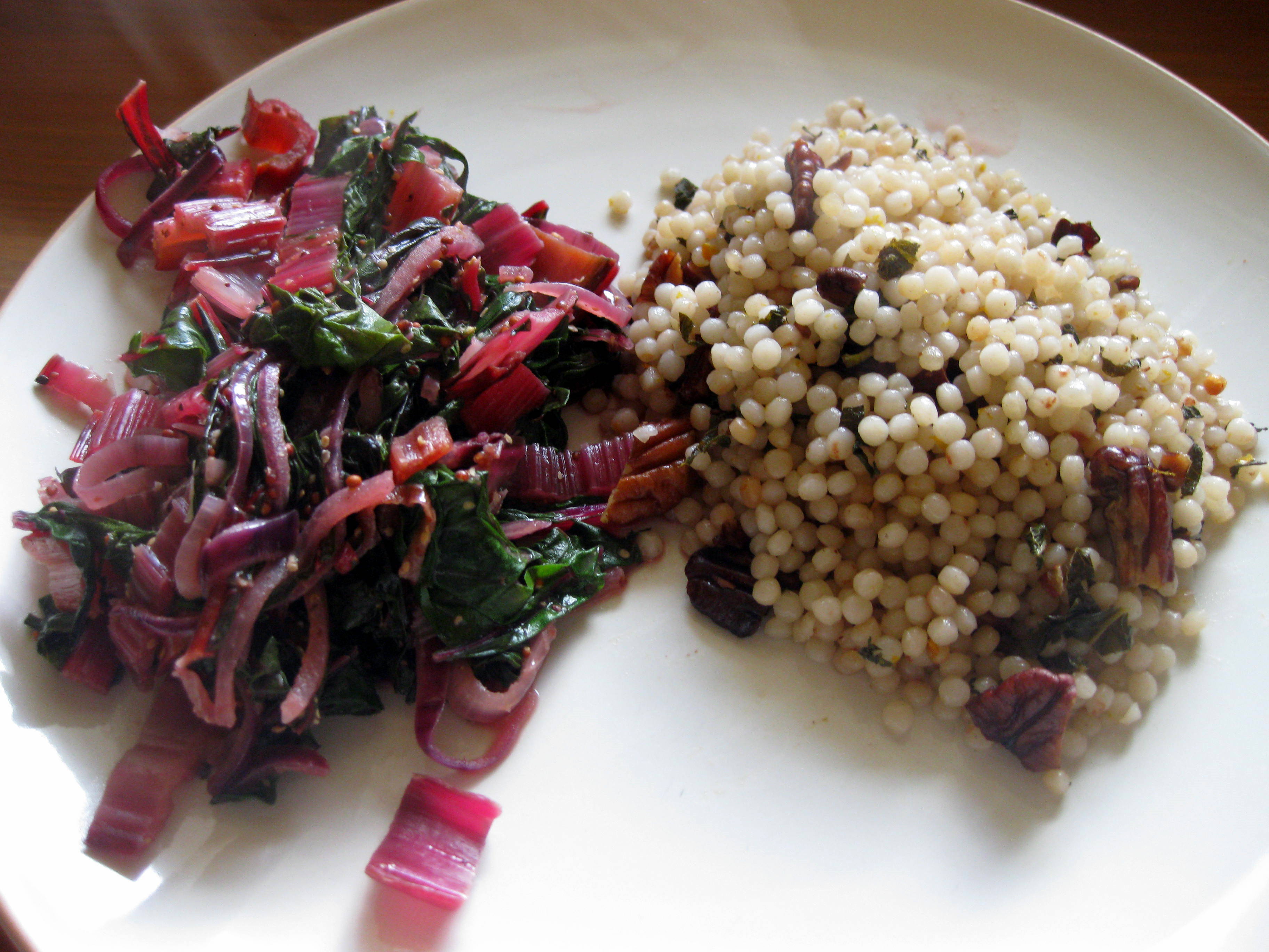 Remembering the pleasing tapioca-like chew of Israeli couscous from my last experiment with this pasta, I was enthusiastic about this combination. I assembled: