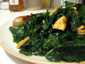 Last year I began experimenting with kale, mostly thanks to bloggers like Shauna at Gluten-Free Girl and Elana at Elana’s Pantry. N. and I have chomped our way through kale in lasagna, pesto, braised with soy sauce and mushrooms, and of course coated in olive oil, sprinkled with salt and paprika and roasted into chips. Its robust, almost waxen toughness seemed to require aggressive cooking techniques. I never believed the recipes I read suggesting raw consumption could be tasty. And yet Bittman advocated for this as well!