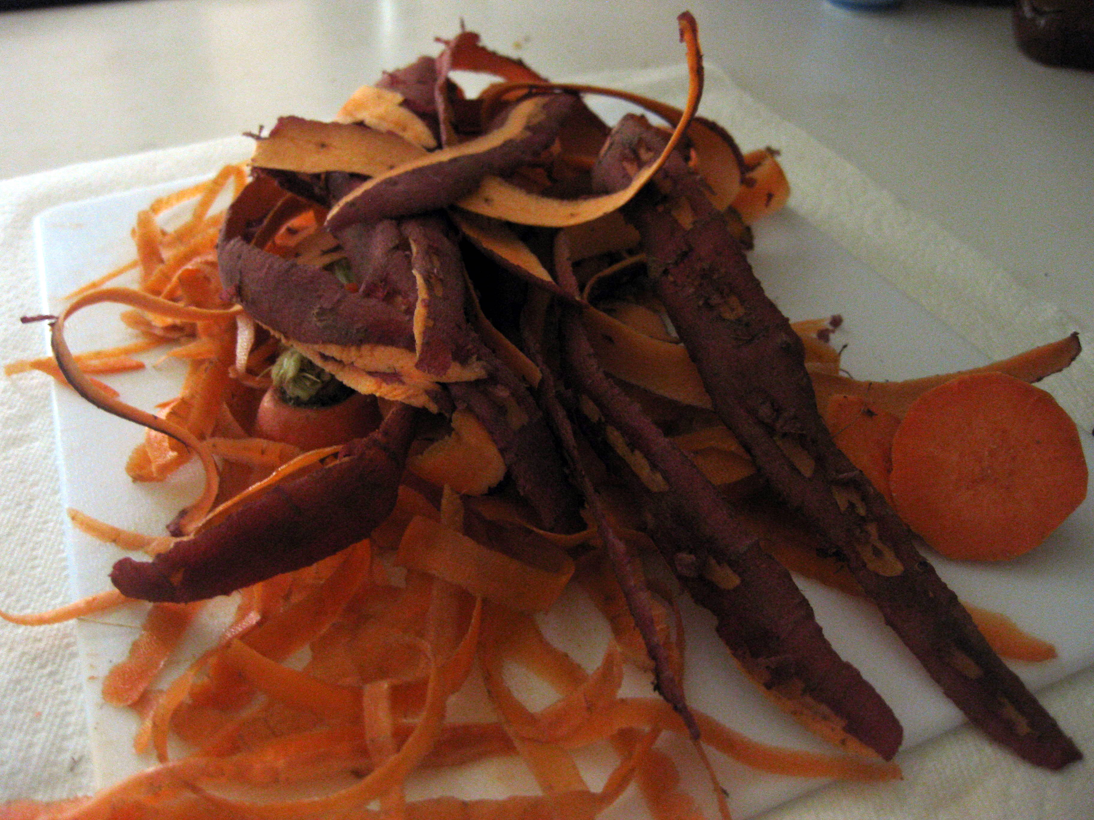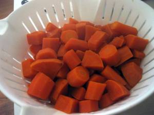 Bittman’s recipe seemed to advocate boiling the carrots and sweet potato whole. I decided to shorten the cooking time and cut the vegetables into chunks first. I boiled them in lightly salted water for fifteen or twenty minutes, or until the sweet potato chunks were tender and the carrots still had a touch of texture.