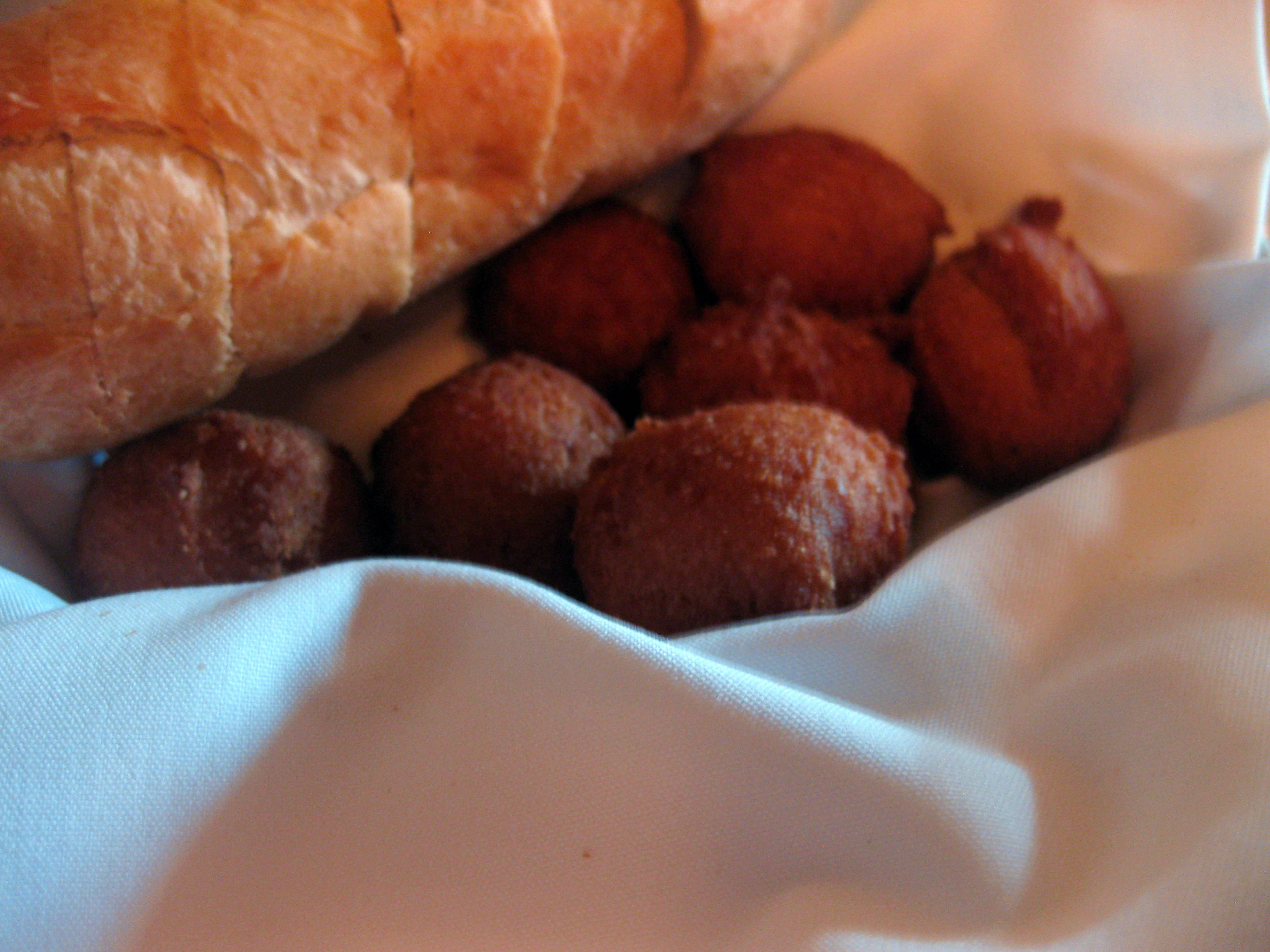 Hush puppies nestled under freshly baked bread