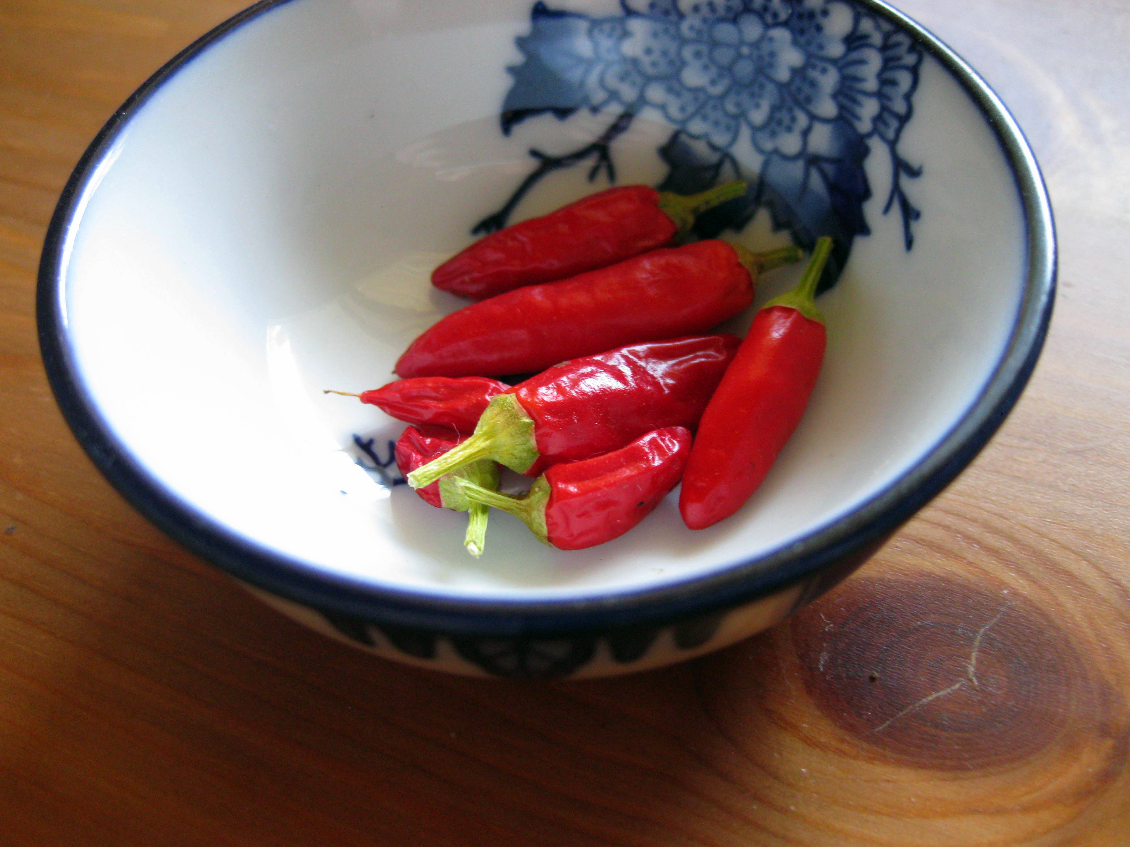 3 teeny, teeny tiny “super chili” peppers from my backyard, seeds removed, finely diced