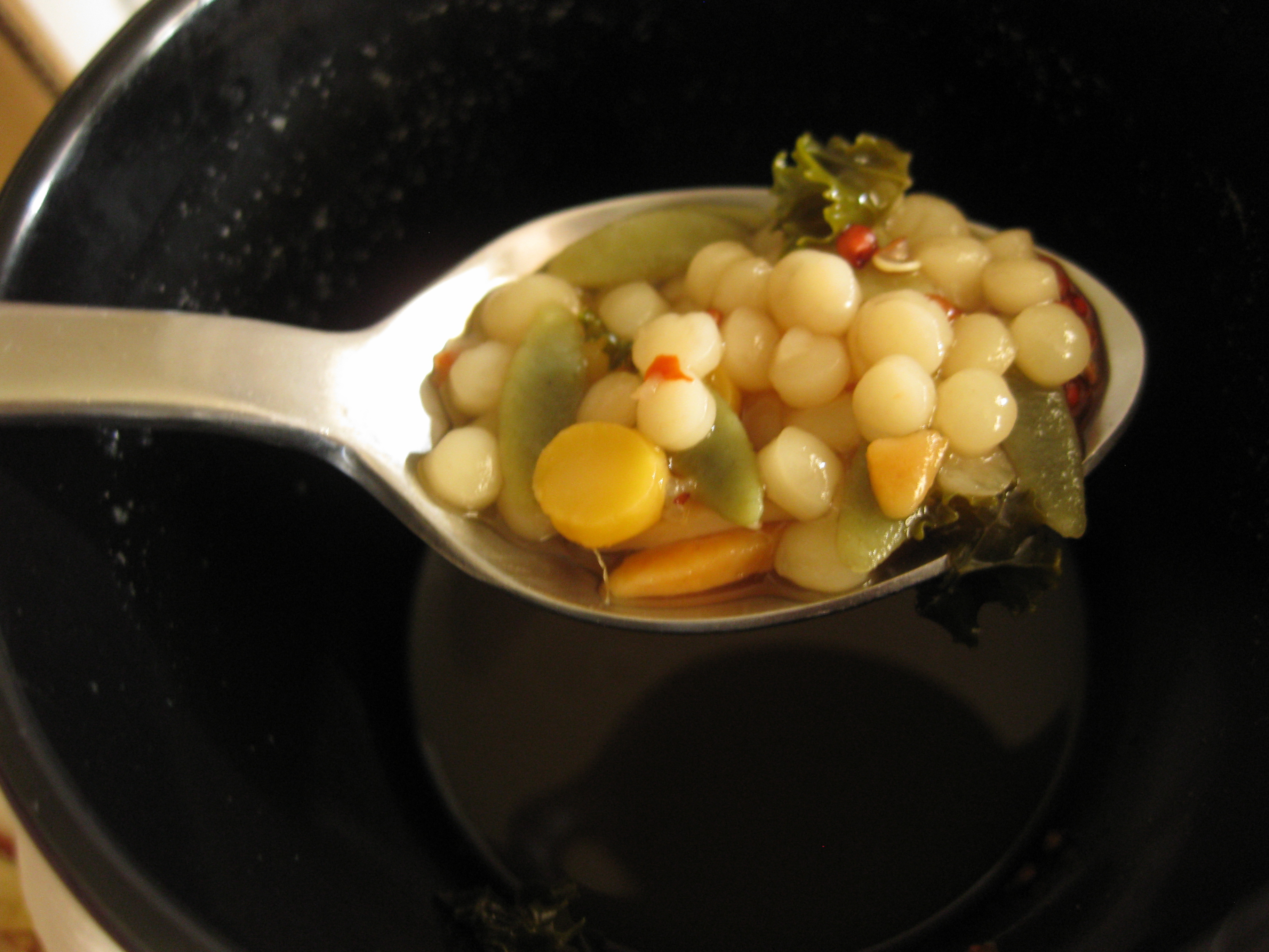 1. No joke, I made almost this exact same thing for dinner tonight only with less grains (pearled couscous only) and more veggies (carrots, broccoli, mushroom). Must have been that kind of day. Thinking of you and hope you are on the mend!