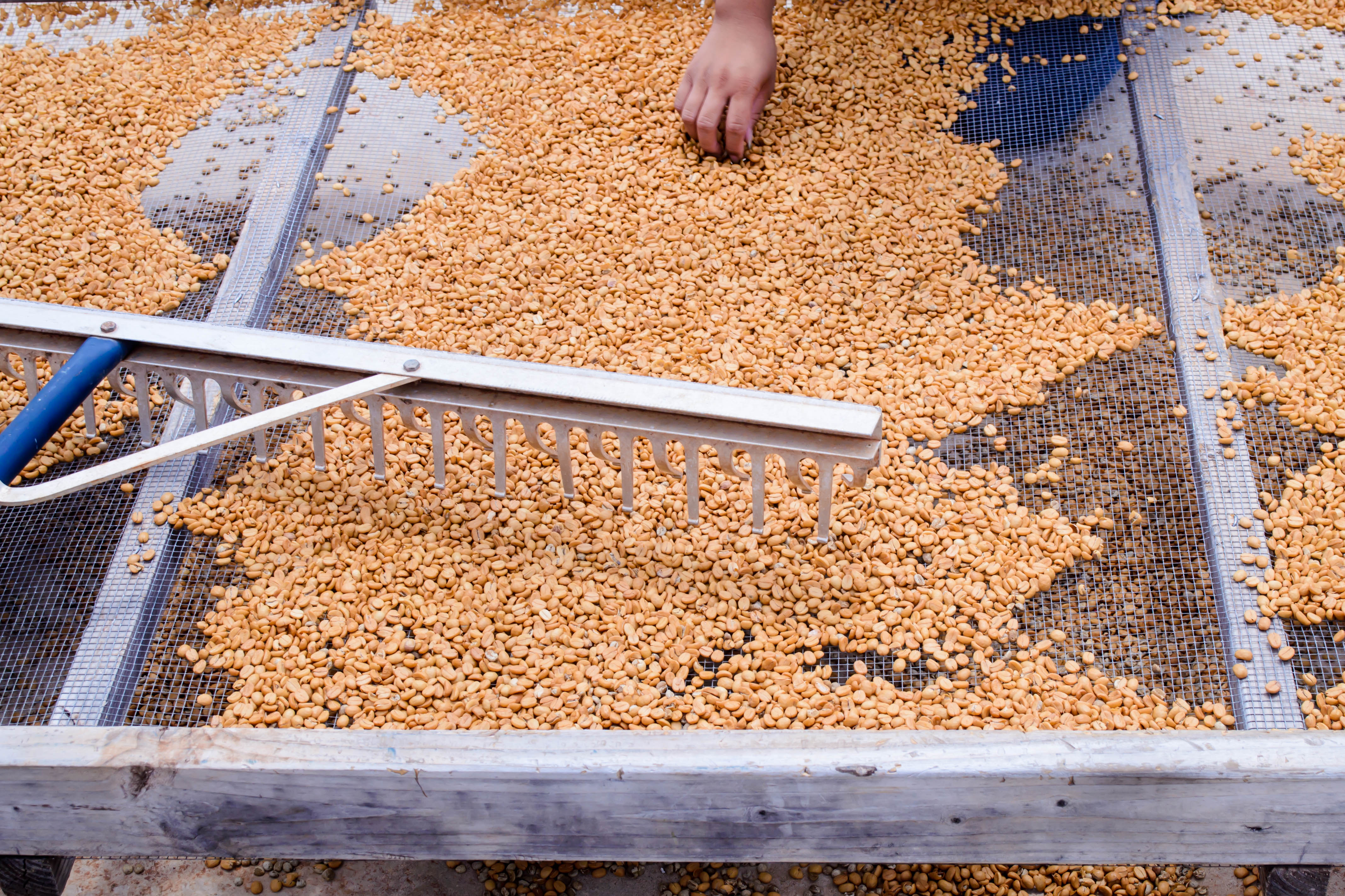 coffee beans drying out before they get roasted.