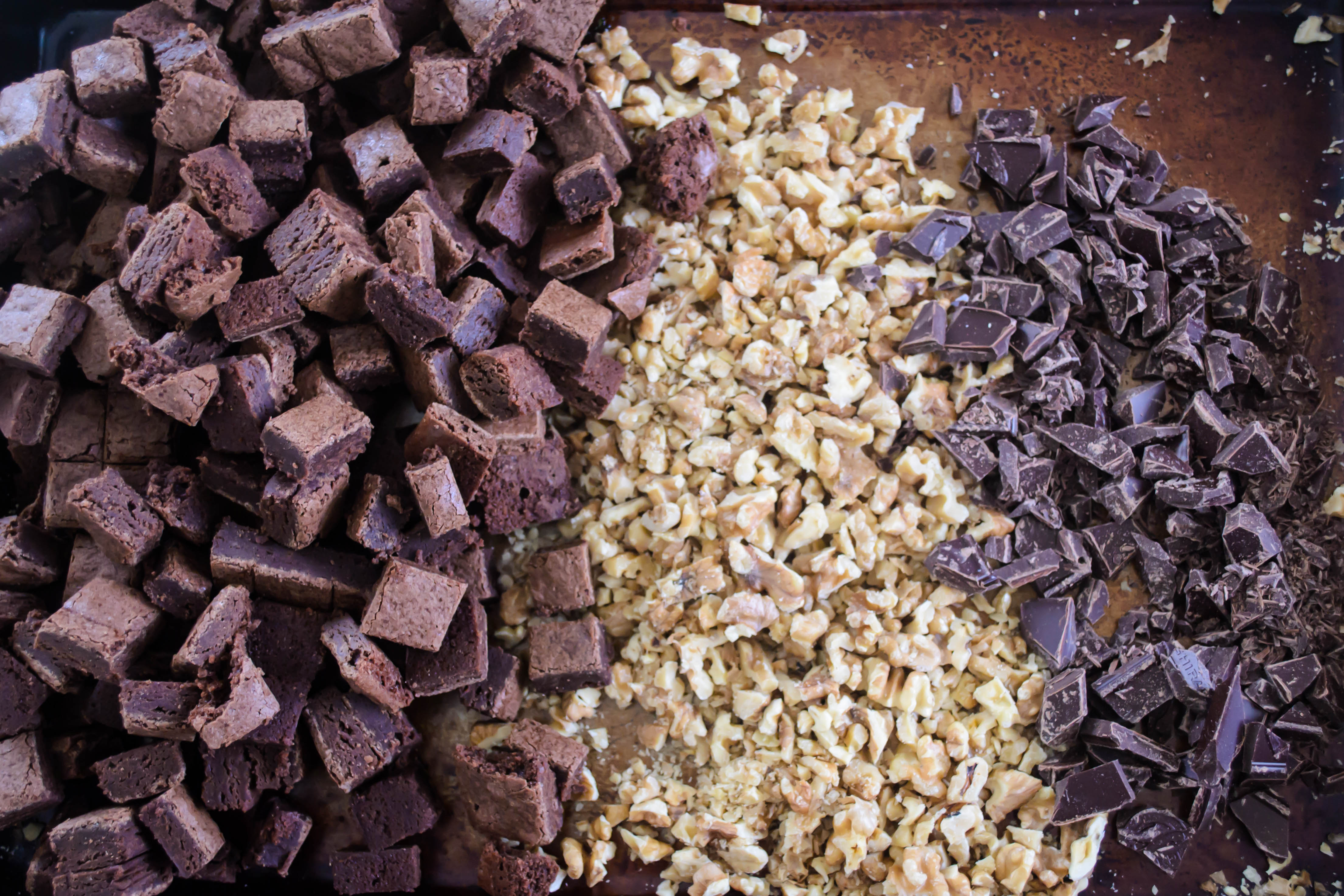 ¾ old-fashioned brownie slab, cut into 1-inch chunks