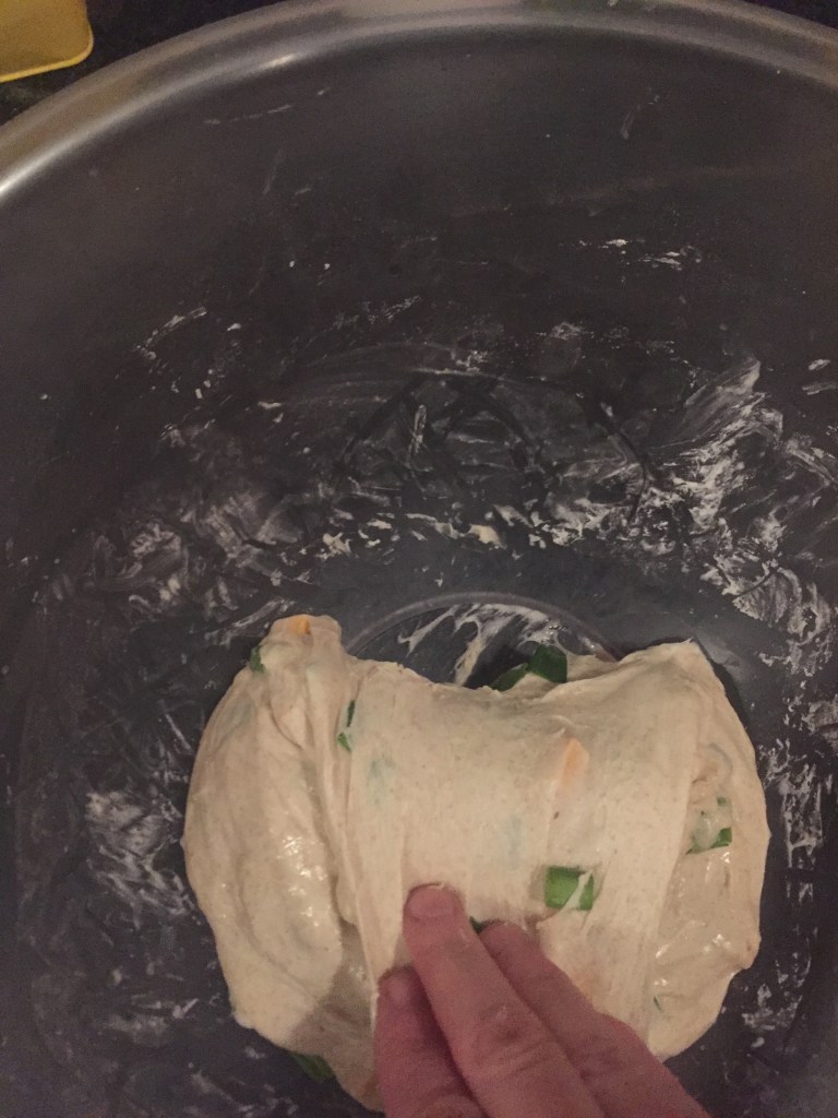 image-10-stretch-and-fold Published January 16, 2017 at 2448 × 3264 in Guest Post: Cheddar and Green Onion Sourdough Artisan Boule