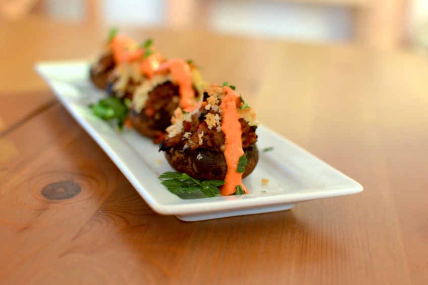 DSC_1399 Published January 21, 2018 at 4608 × 3072 in Chopped Challenge #1: Sausage stuffed mushrooms with goat cheese and roasted red pepper sauce