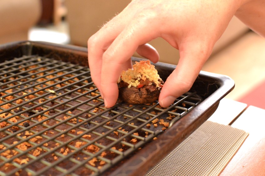DSC_1413 Published January 21, 2018 at 4608 × 3072 in Chopped Challenge #1: Sausage stuffed mushrooms with goat cheese and roasted red pepper sauce