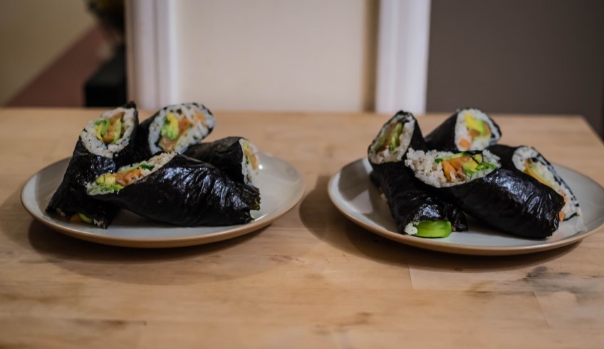 Smoked salmon sushi rolls
