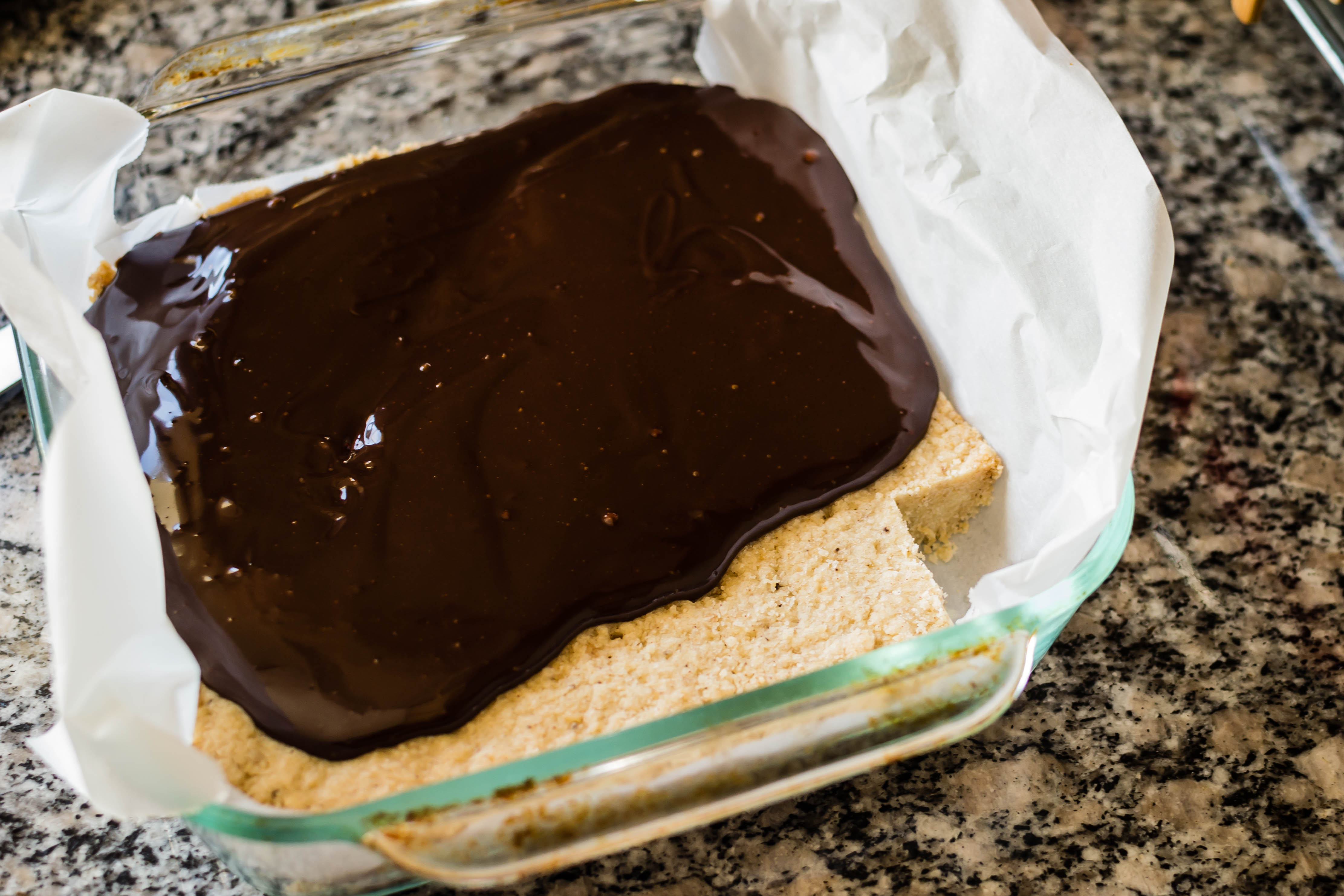 - Carefully pour and scrape the whole puddle into your lined containment vessel and refrigerate until set. I usually leave it overnight, but realistically this doesn’t take more than a few hours. Once it has set completely, remove the block from the pan and slice it into your desired size squares or bars, keeping in mind they will be a little bigger once they are coated in chocolate. If your set ganache seems soft after slicing (this will especially be true if you are using white chocolate), take out some extra insurance by stowing the pieces in the freezer for a bit before coating them.