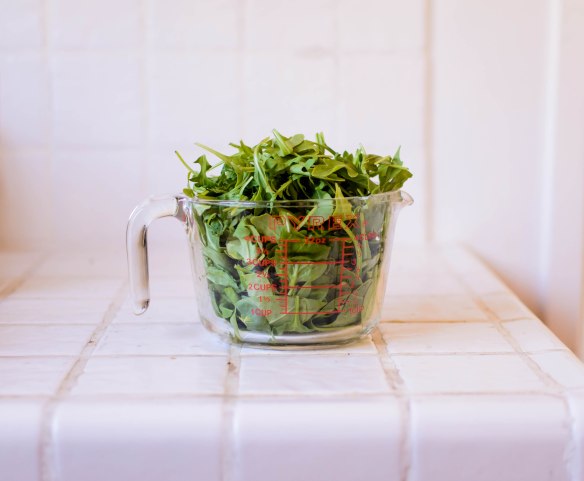 I elected to halve the recipe. This is of course not simple when dealing with odd numbers of eggs, so I polled the cooks in my family and R., of course, had the answer: “Just beat up the whole eggs, measure out half, and have a scramble for lunch with the other half.” Works for me. I’ve included measurements below.