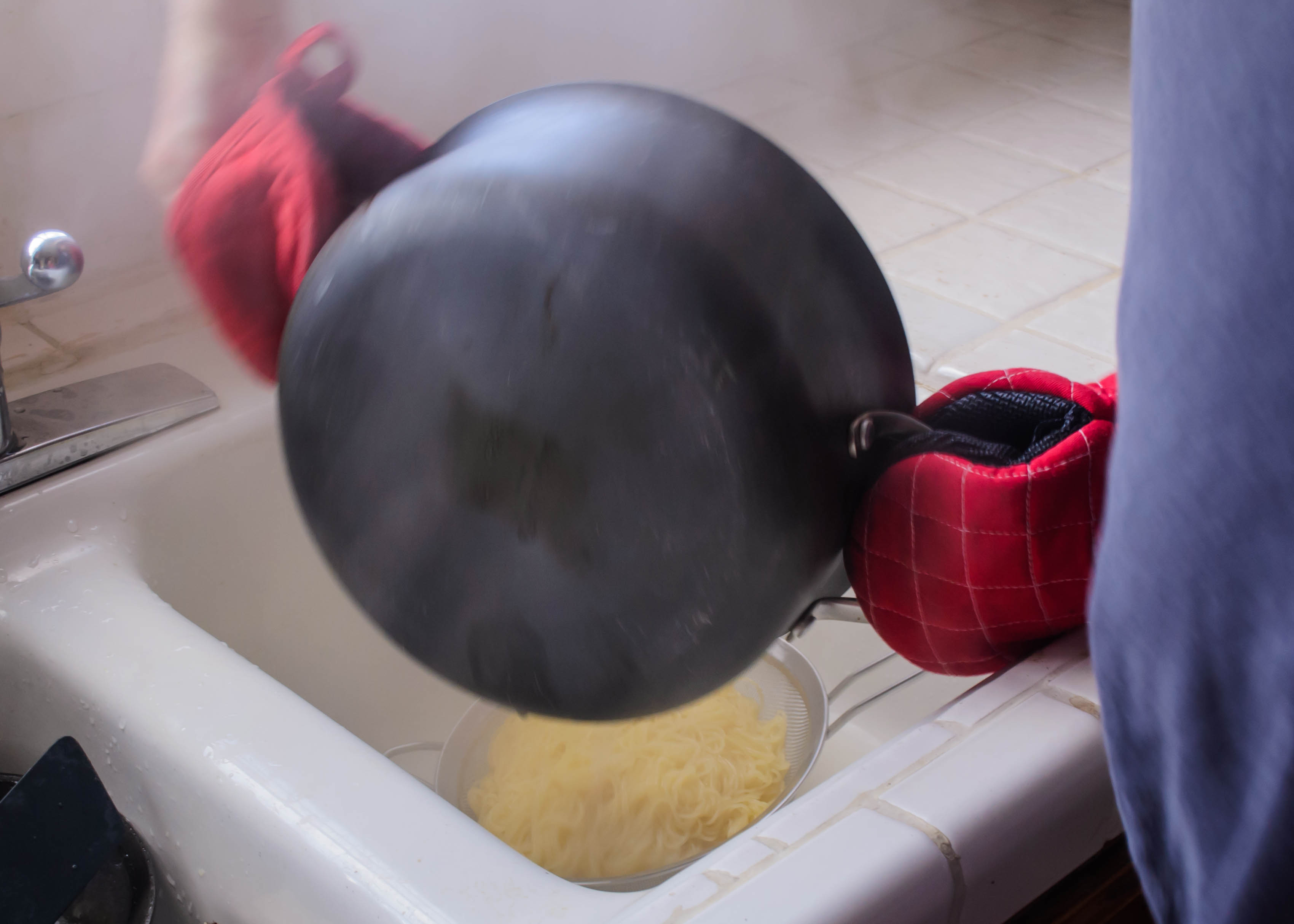 - Integrate the drained pasta (I use tongs for this), then place the skillet back over medium-low heat and cook, frequently manipulating the pasta with your tongs, for another two minutes. This lets the pasta absorb some of the sauce.