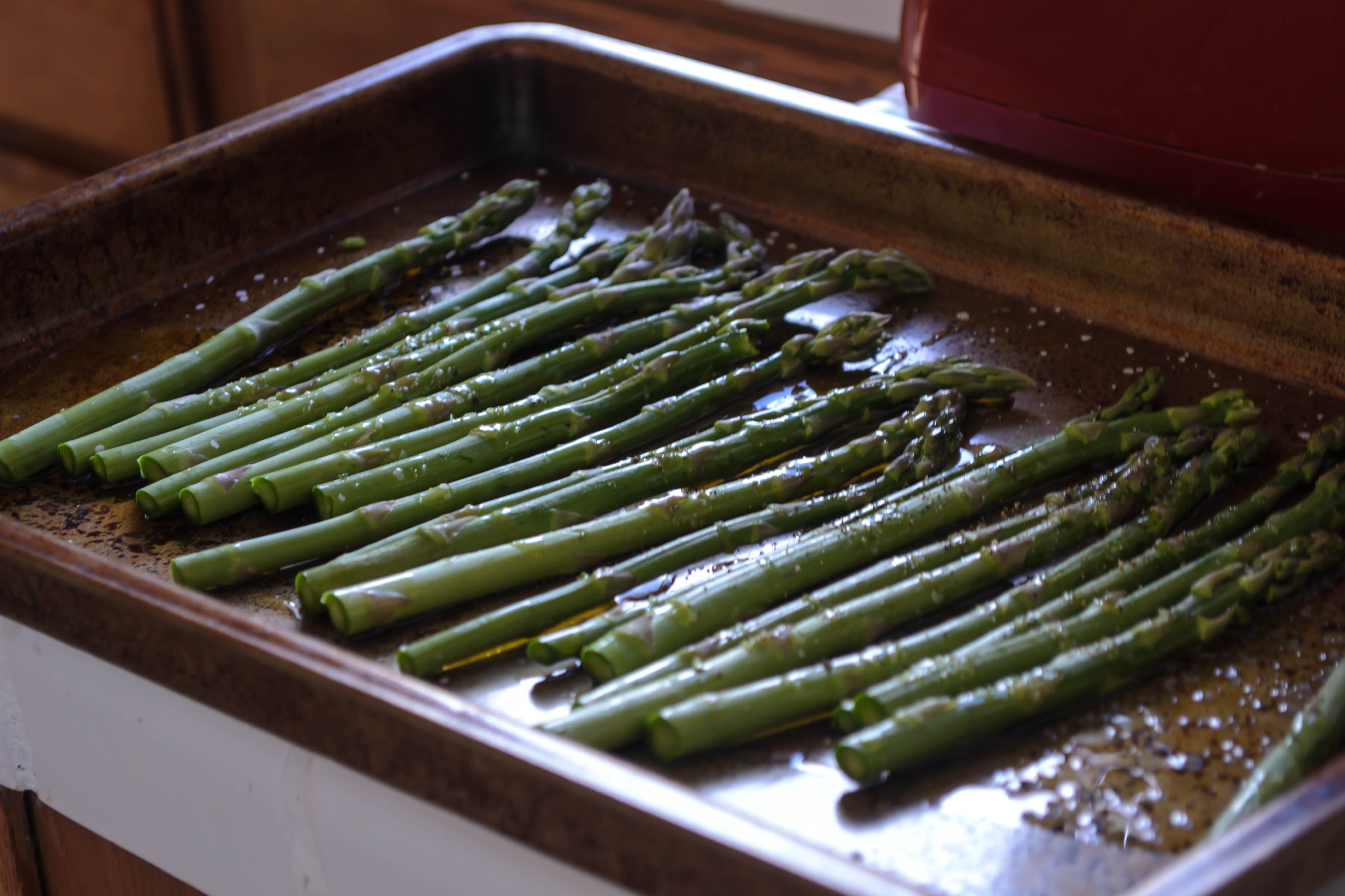- Line two baking trays with aluminum foil and place them in the oven. Preheat oven, trays and all, to 450F.