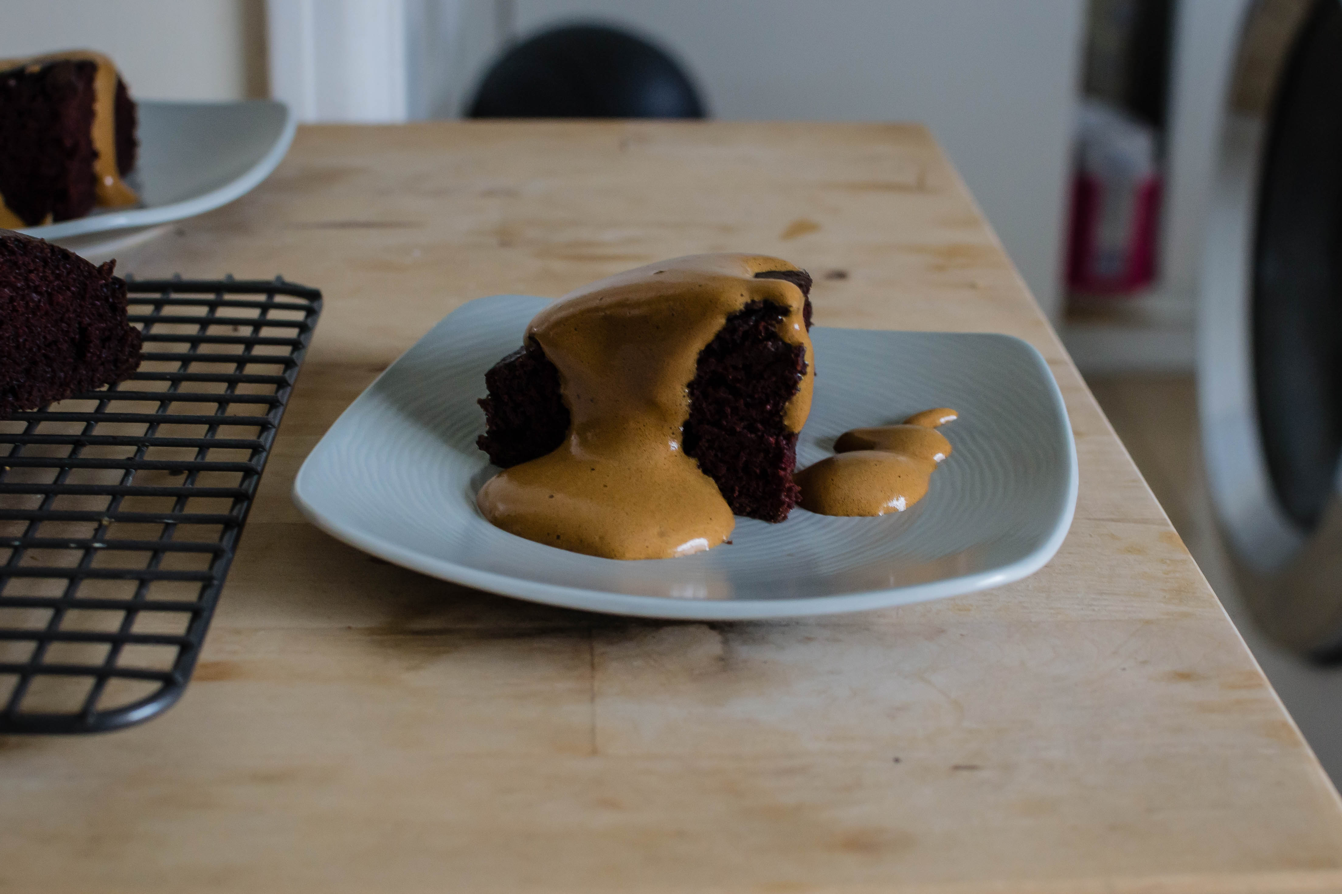 - For gravy, carefully pour out the remaining oil in the pan, but leave any browned bits behind for extra flavor. These are called fond. Melt the 2 tablespoons butter over medium heat, then sprinkle in the flour and whisk together. Let flour and butter cook for 1-2 minutes into a loose, lightly golden smear. Stir in the instant espresso powder, the brown sugar, and the dijon mustard. Add the beef broth, whisking constantly to deter lumps. Continue to whisk slowly until mixture reaches a simmer and thickens to a gravy consistency. Taste for seasoning, keeping in mind flavors will intensify as it continues to simmer.