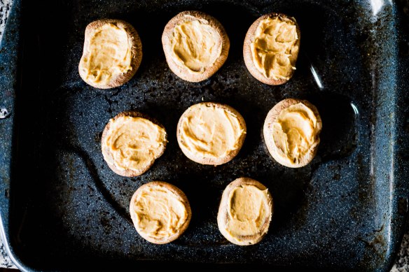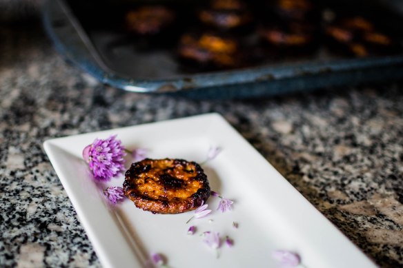These are rich, taking a long time to bake and an insistence on cooling completely before they can be dealt with. Ideally they should be refrigerated overnight to let the coconut oil and the oils the nuts release chill and reconstitute, while the pumpkin and tofu mixture solidifies into something creamy and almost smooth. But in addition to a baking dish, they do require only one food processor and a small bowl to mix up, so that’s easy. They fit right into a long, slow afternoon when you need something sweet and tender and spiced to comfort you.