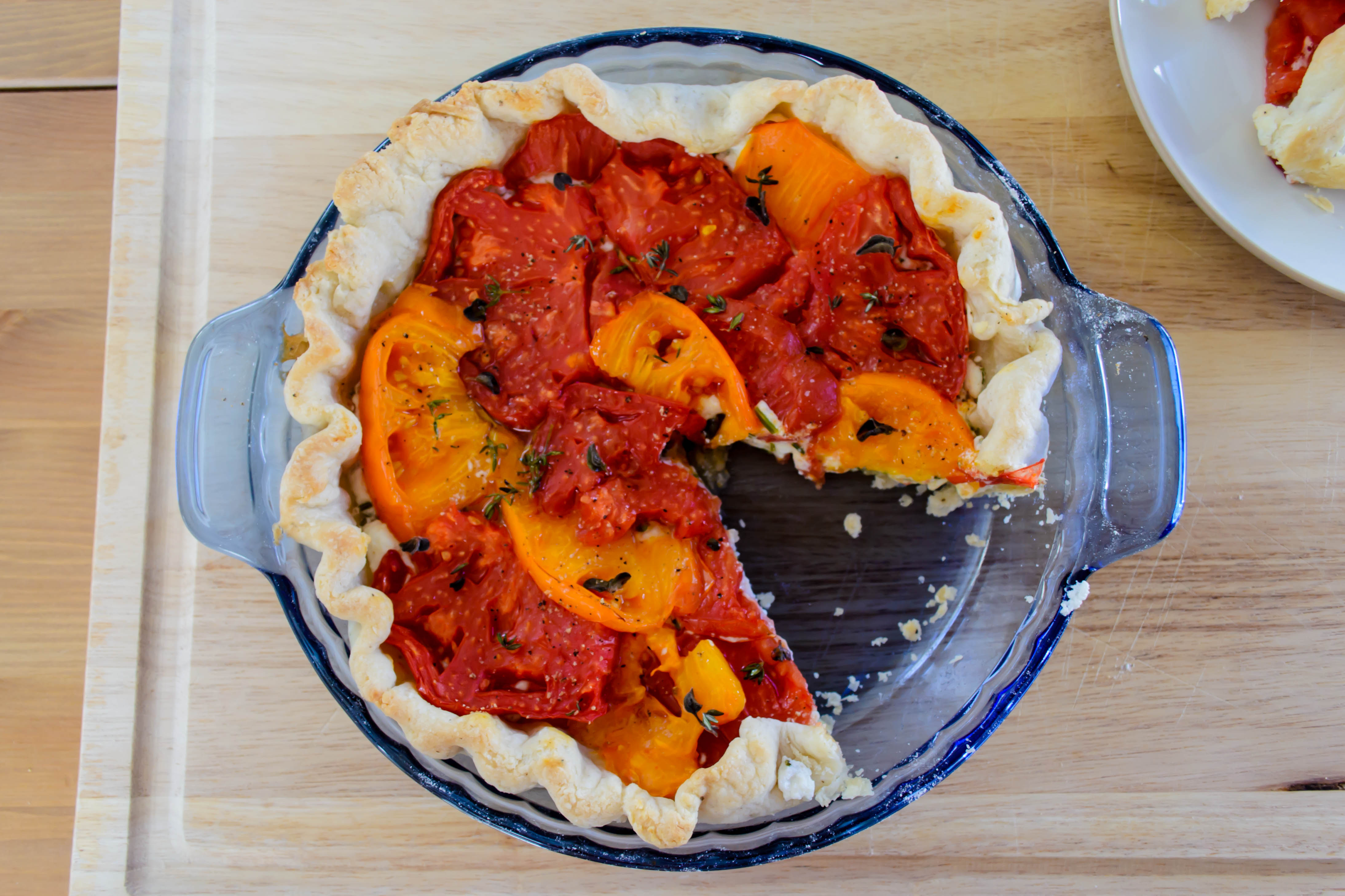 A few weeks ago, stunned by the number of gleaming tomatoes we’d managed to produce, in shades of deep crimson and flame yellow, I did what anyone trying to find inspiration would do. I asked Facebook. And my friend M. responded with an idea I’d never considered: tomato pie.