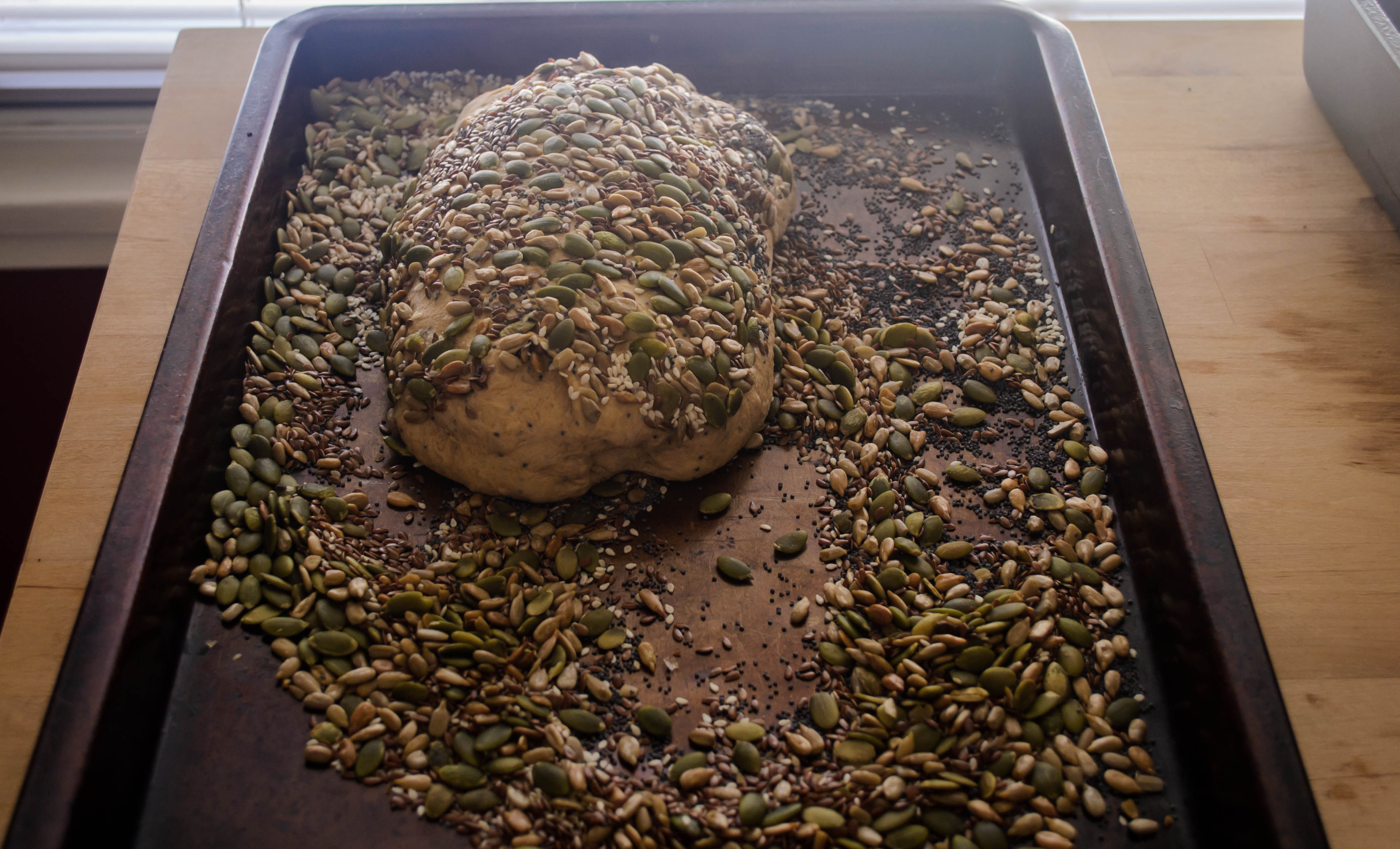 (optional: ⅓ cup honey, warmed, to brush over the loaf)