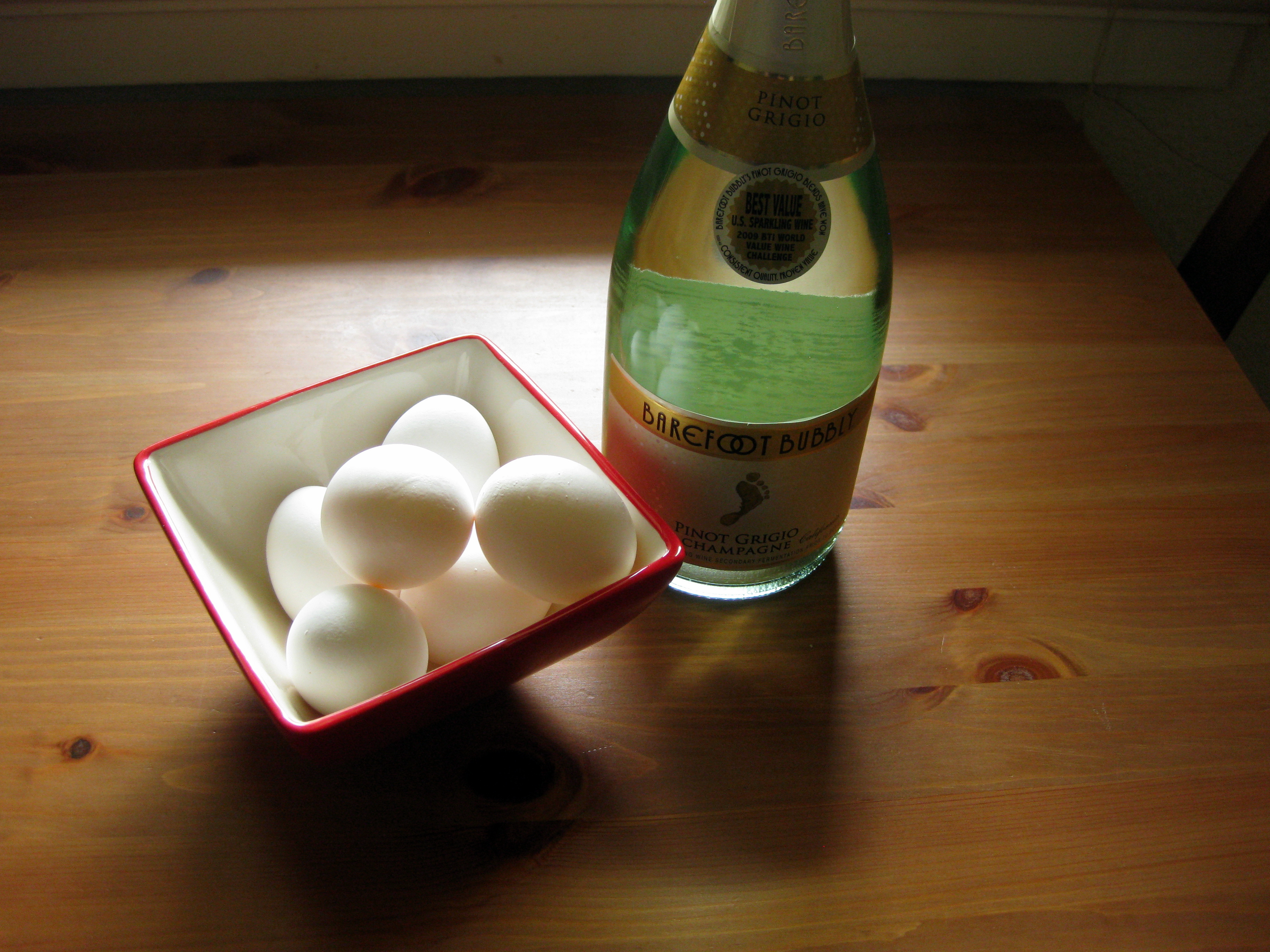 Last time I made a floaty, creamy filling that coated the tongue and whispered with sweetness. This time, I wanted something tart – almost aggressive – to to cut through the sometimes overwhelming clouds of frosting. I combined 1 bag each frozen raspberries and frozen peach chunks, 1-2 cups champagne, and about ¼ cup of sugar in a small pot, and simmered them together for 20-30 minutes. I was hoping for a thickened, jam-like compote, but I think there was too much champagne for that, and the mixture stayed fairly loose. The flavor was great, though – with such a small quantity of sugar, the tartness of the fruit and champagne made the mixture bright and assertive.