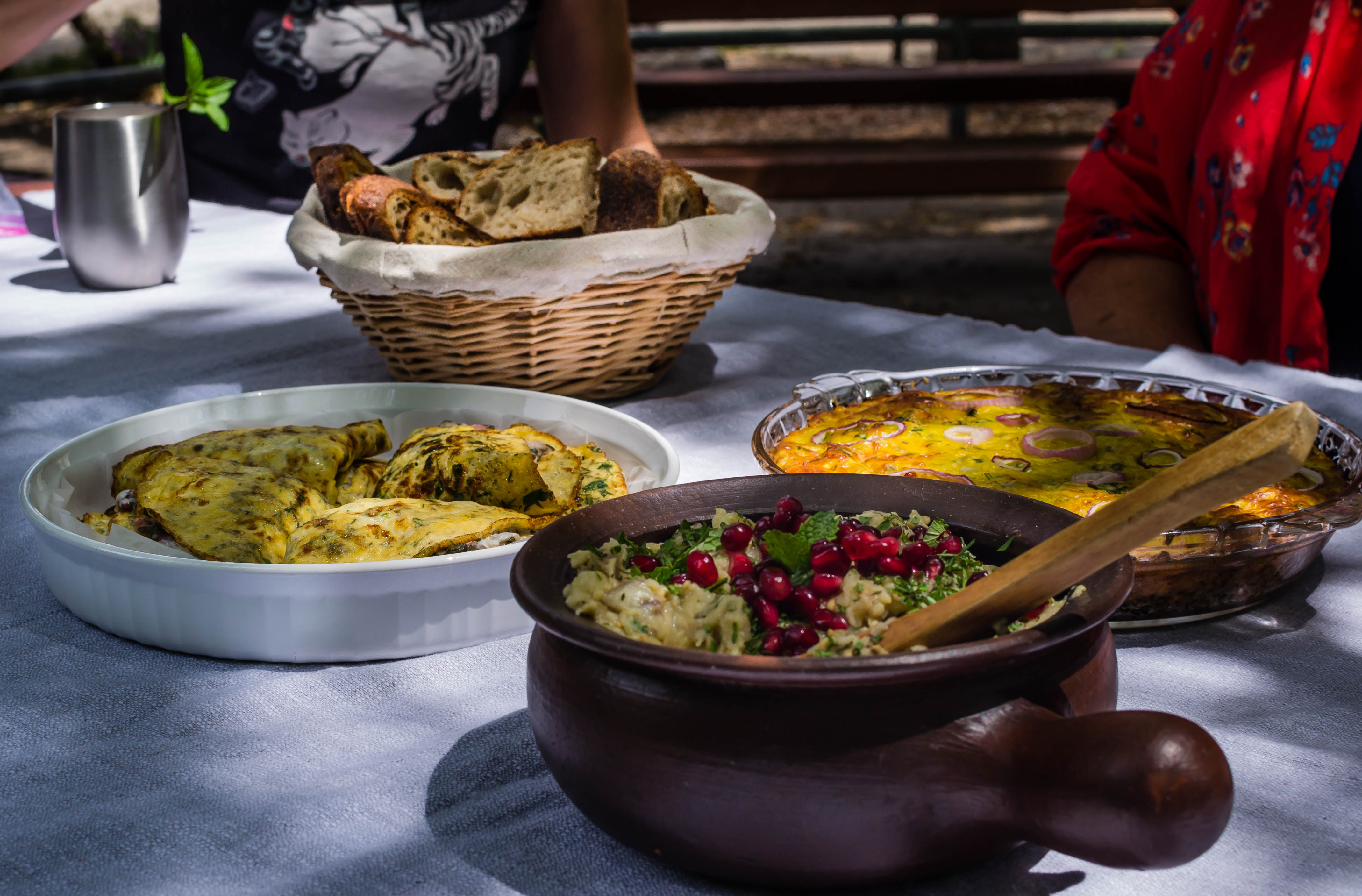 If that’s not enough gore for your Purim table, I have just the thing for you: a traditional Moroccan bread known as boyoja ungola di Purim or ojos de Haman. This is a round, flattish loaf decorated with two hard boiled eggs in their shells, which are meant to represent Haman’s eyes. Each egg is held down with two thin strips of dough arranged in an x, and, once the bread is baked, it’s a traditional to rip them out of the loaf—you know, like ripping Haman’s eyes out. The dough for this bread is traditionally studded with anise and sesame seeds, as well as coarsely chopped almonds.