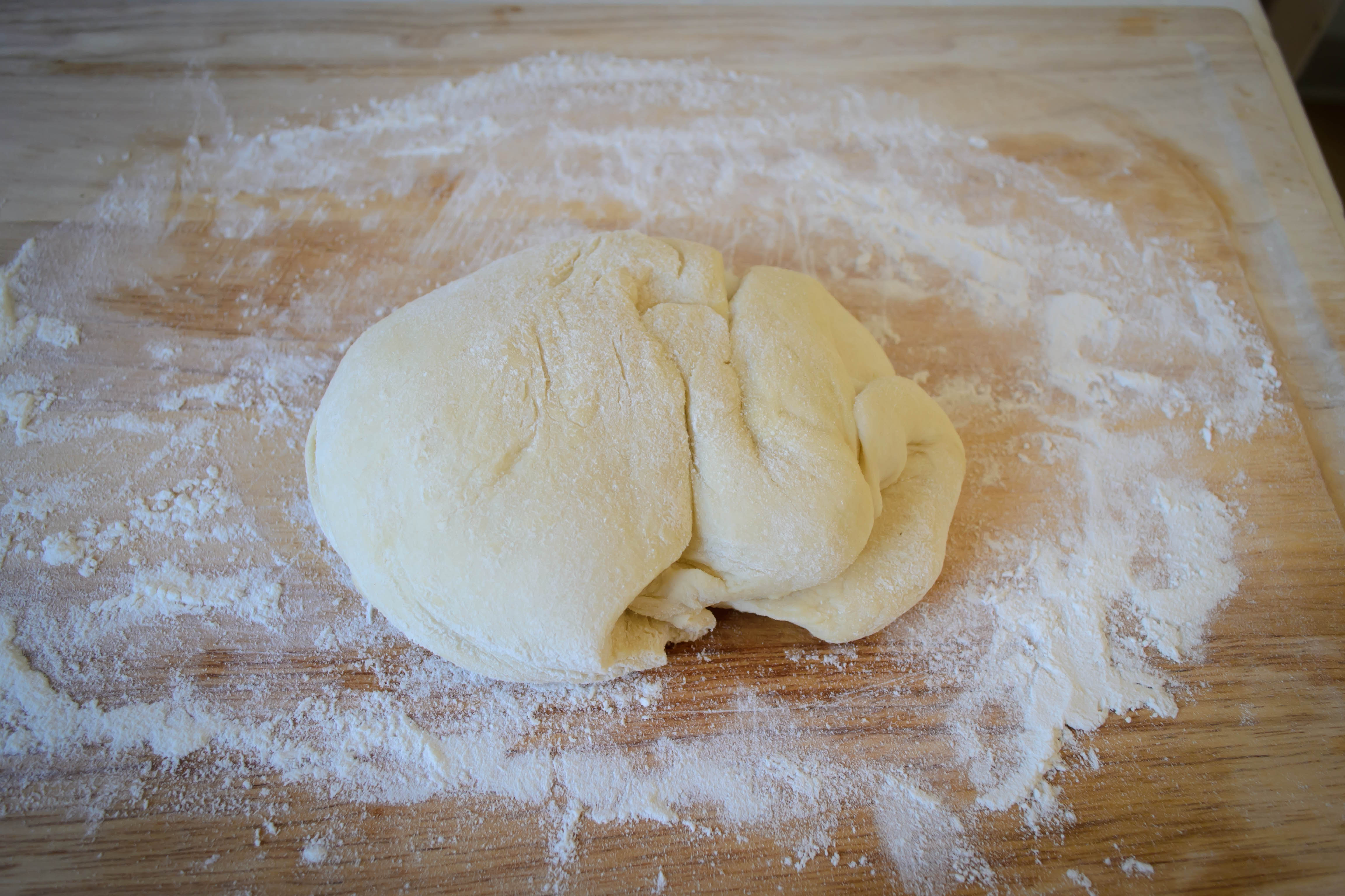 After an hour, the butter has firmed up again and the dough has relaxed. Pull it out and free it from the plastic, plopping it carefully onto a well floured board. It’s a very sticky dough, so flour your rolling pin and the top of the dough itself well to avoid irritation. Roll the dough out until it is three times its original size, maintaining the rectangular shape. Fold it into thirds, press down well, and then roll it out again. Fold it into thirds for a second time. I did mine in the opposite direction of the first fold, which was probably wrong, but again, produced no discernible taste consequences. Press down firmly, wrap up the dough in plastic wrap again, and put it back into the fridge for another hour.
