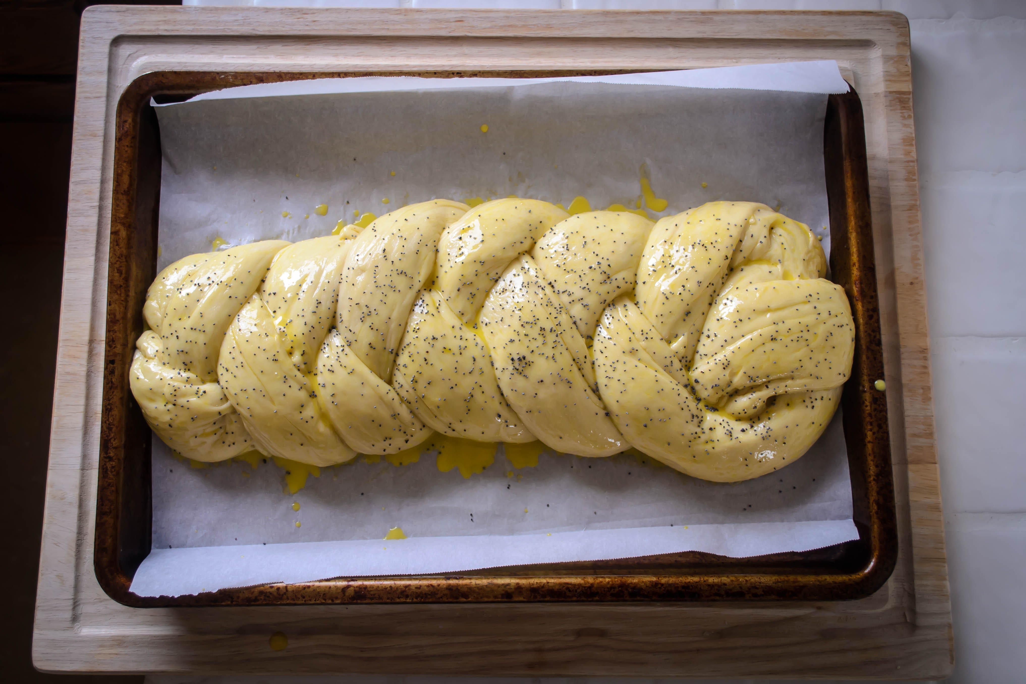 Neither of these is bread, of course, but while I was poking around that weird neighborhood “the internet,” I came across two possibilities for this year’s project. Keylitsh, according to the blog Poppy and Prune, is an elaborately braided Eastern European challah served for numerous holidays. At Purim, the fancy braids are symbolic of the rope used to hang Haman. I am well versed in the three-strand challah I learned from my mom, and I’ve tried a six-strand once that went… poorly… so I kept going.