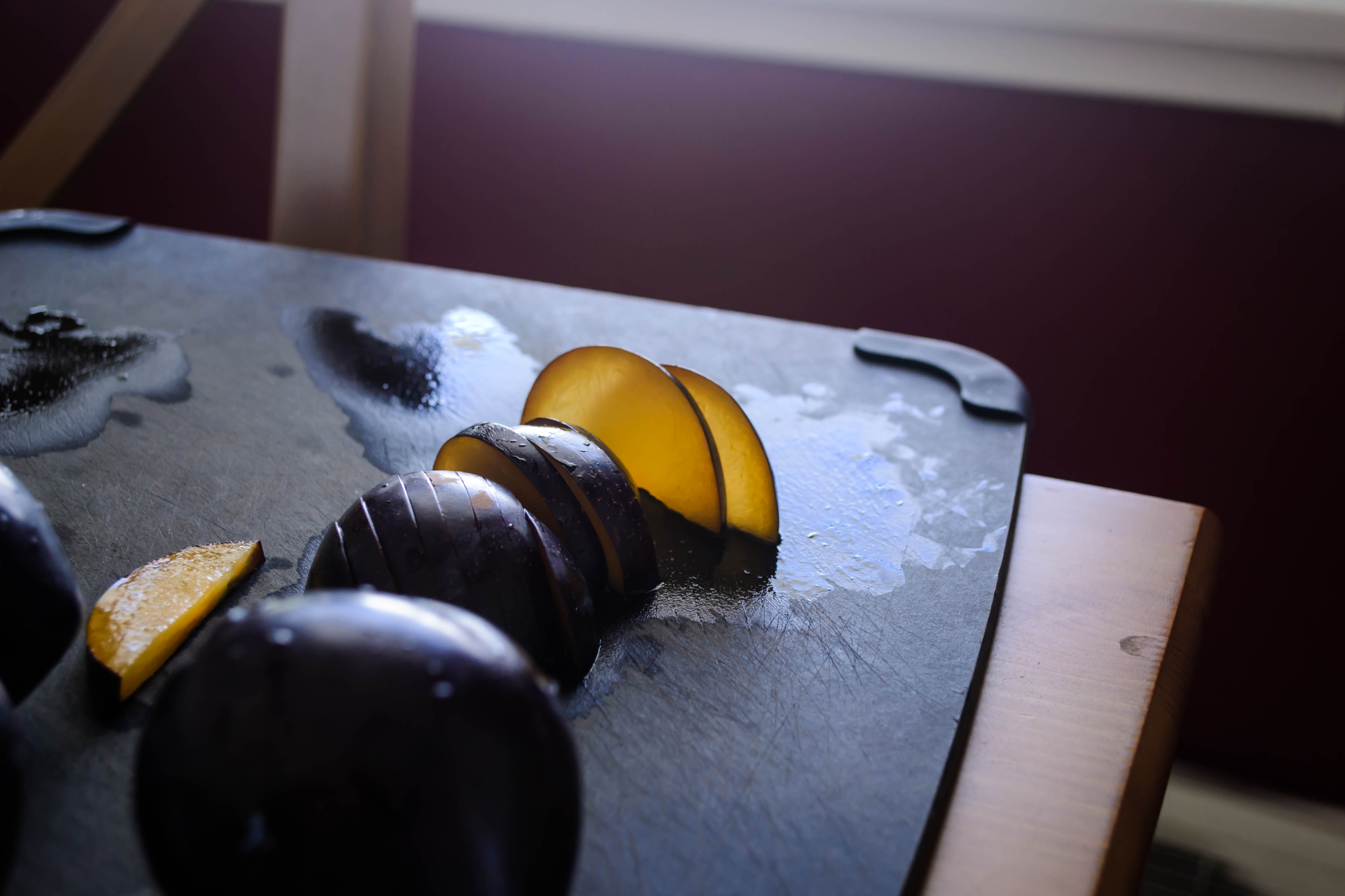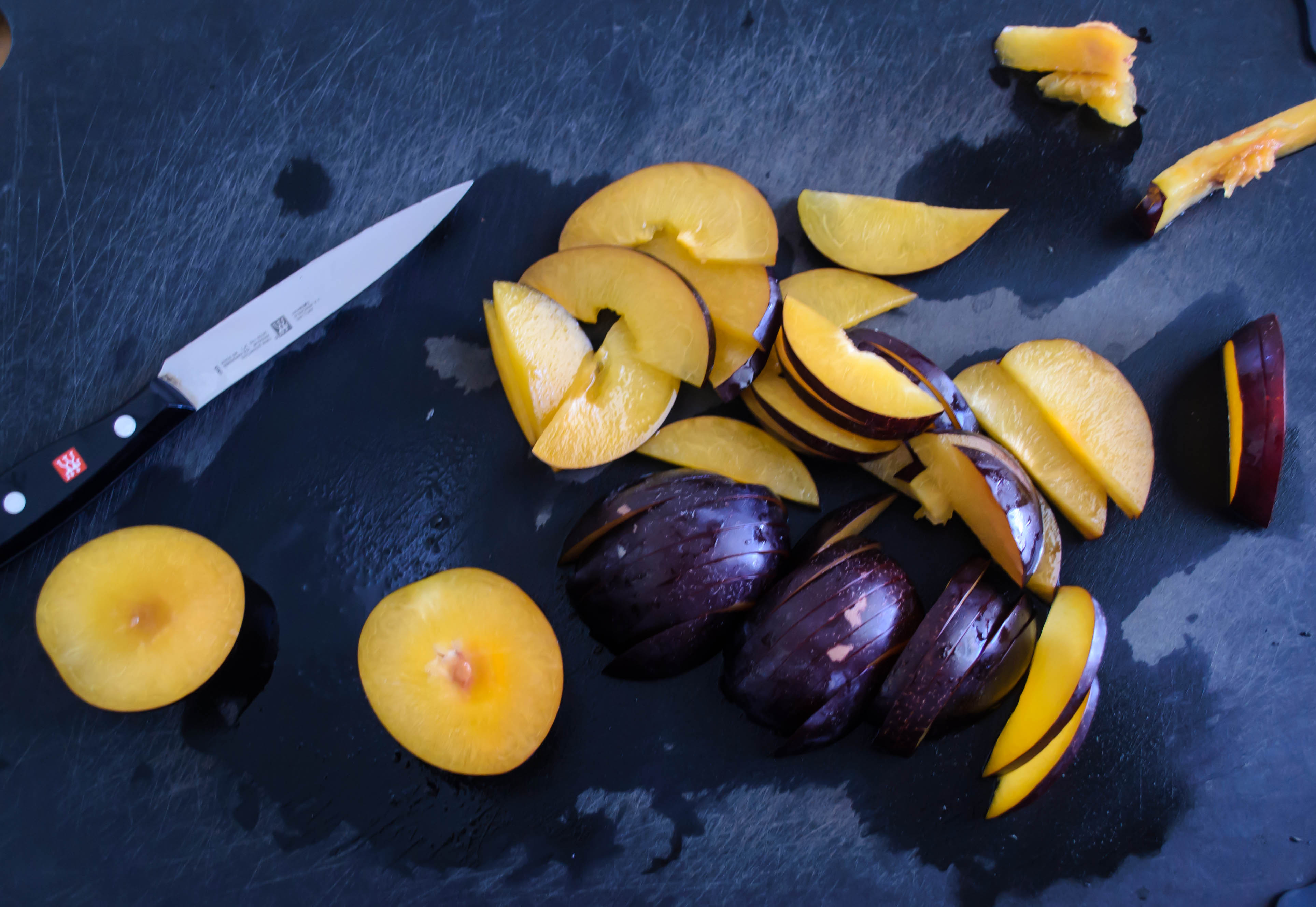 4-5 yellow-fleshed plums, thinly sliced (firm, or even slightly underripe, will be easiest to work with)