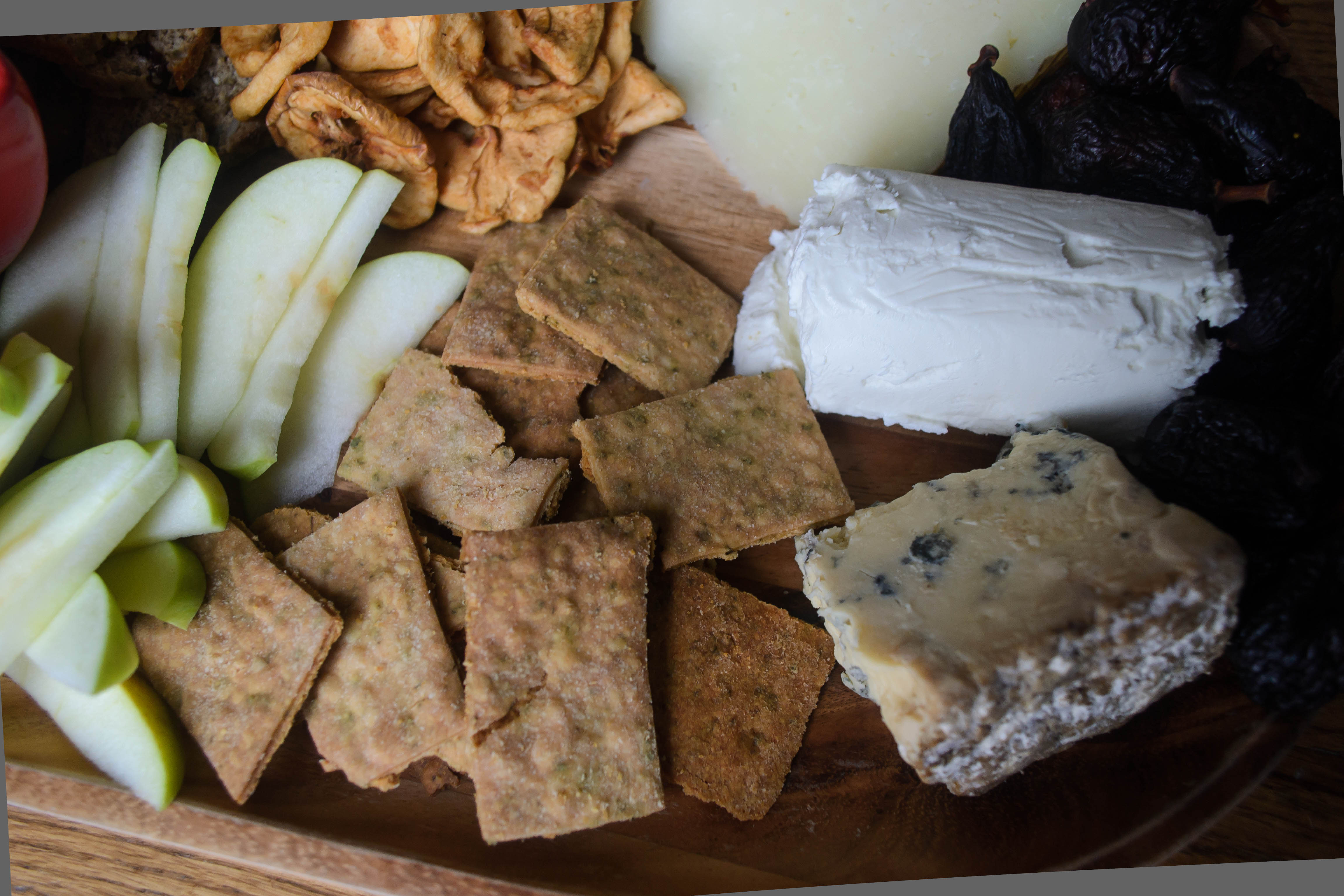 I’ve always liked a nice cheese-and-crackers platter as an appetizer option, and these seemed like a good option to lead into the big Thanksgiving meal: relatively easy to make, but impressive – who wouldn’t be staggered by the effort of making homemade crackers even with a homemade feast to produce as well?