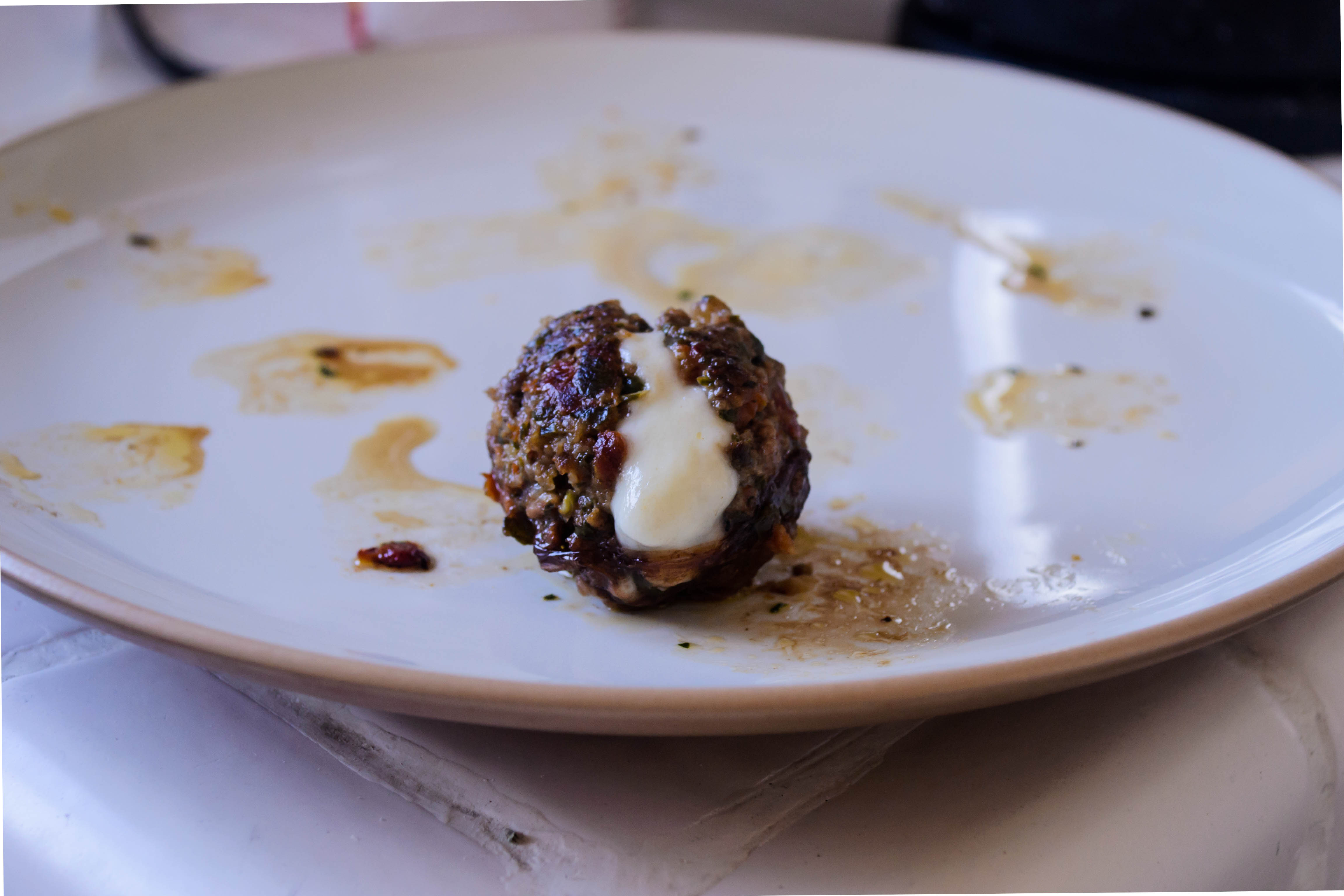 ball of fresh mozzarella (burrata would also be lovely, though a touch messy)