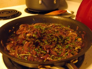 These are not doctored, though, any further than the original pairing, and honestly, they don’t need to be. Even the tartest apple, as were the two tiny granny smiths I cubed up, mellows as it cooks, playing with and enhancing the sweetness of the onion. You could have them as we did: the “bread” of a breakfast-y sandwich (I mixed bulk sausage with maple syrup, red pepper flakes, and a squeeze of Dijon before frying in patties to put in the center), but I bet, especially if we are thinking seasonally, that they would be perfect cut a little smaller and swaddled in a basket to be served alongside a Thanksgiving turkey.