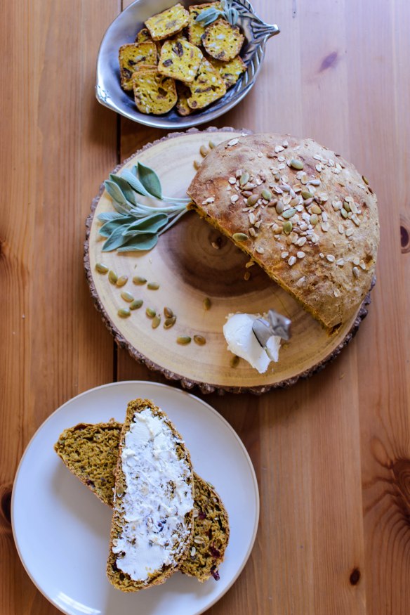 A few weeks ago, Irvin from Eat the Love posted on his instagram feed that he wasn’t seeing many pumpkin recipes from the bloggers he follows, and both politely and in fun, essentially told everyone to step it up! Instantly (although I’m definitely not one of his favorites – I doubt he knows I exist!) I knew I wanted to make pumpkin biscotti, using one of his tricks (more on that later). I would stud them generously with pumpkin seeds since I’d had that bag of pepitas in the pantry forever,* and maybe some other nuts, and top them with coarse, crunchy sugar or a criss-crossed shiny glaze, and I’d be right on trend.