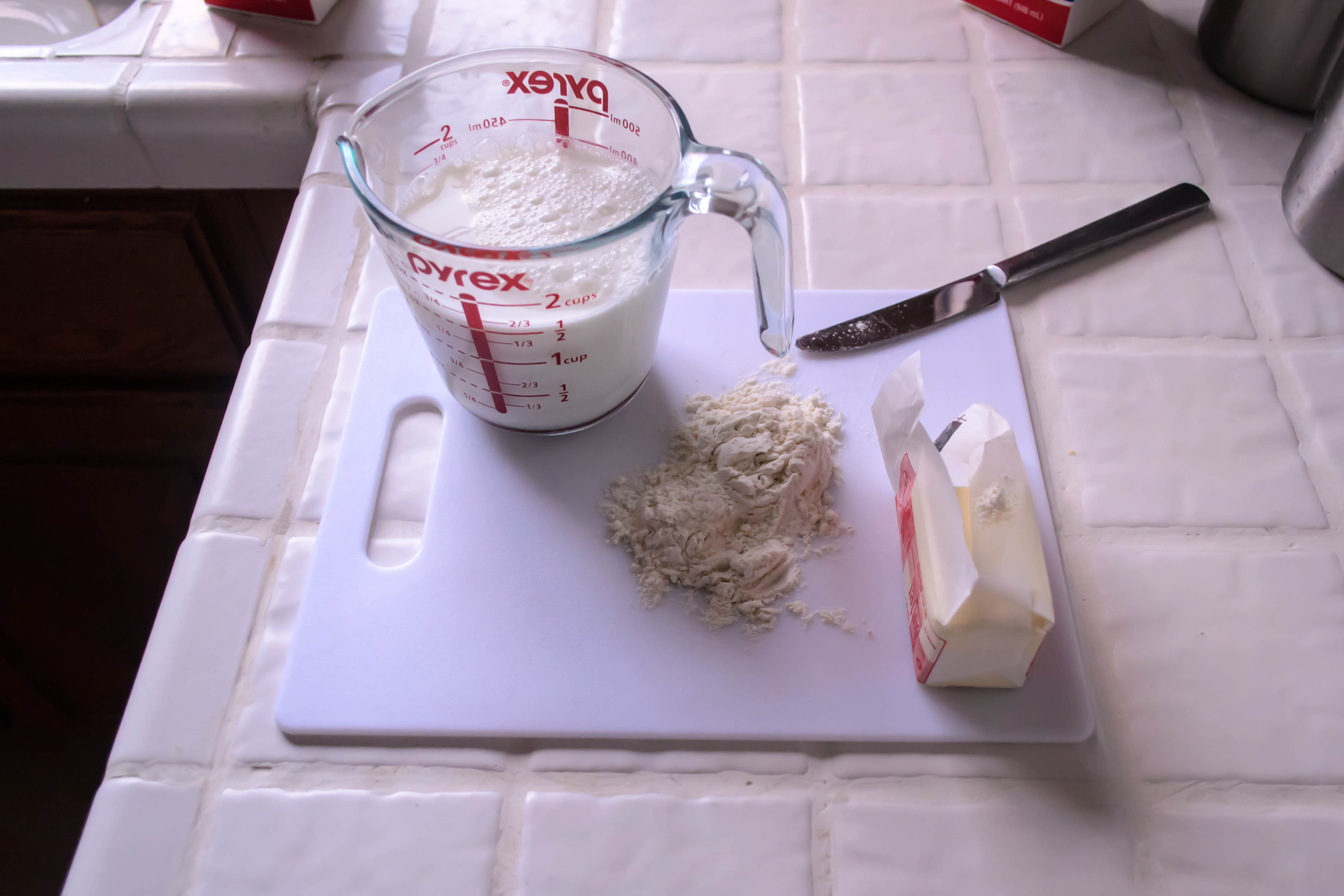 - For the sandwich filling, set up a three-part breading station: you will need three plates or shallow bowls. Pie plates work very well. On the first plate/bowl, combine the flour with the salt and cayenne, mixing well with a fork or a small whisk. Spread out the flour mixture in an even layer across the plate. In the second plate/bowl, crack the eggs and beat well to combine. In the third plate/bowl, dump 2 cups of the panko and spread out in an even layer.
