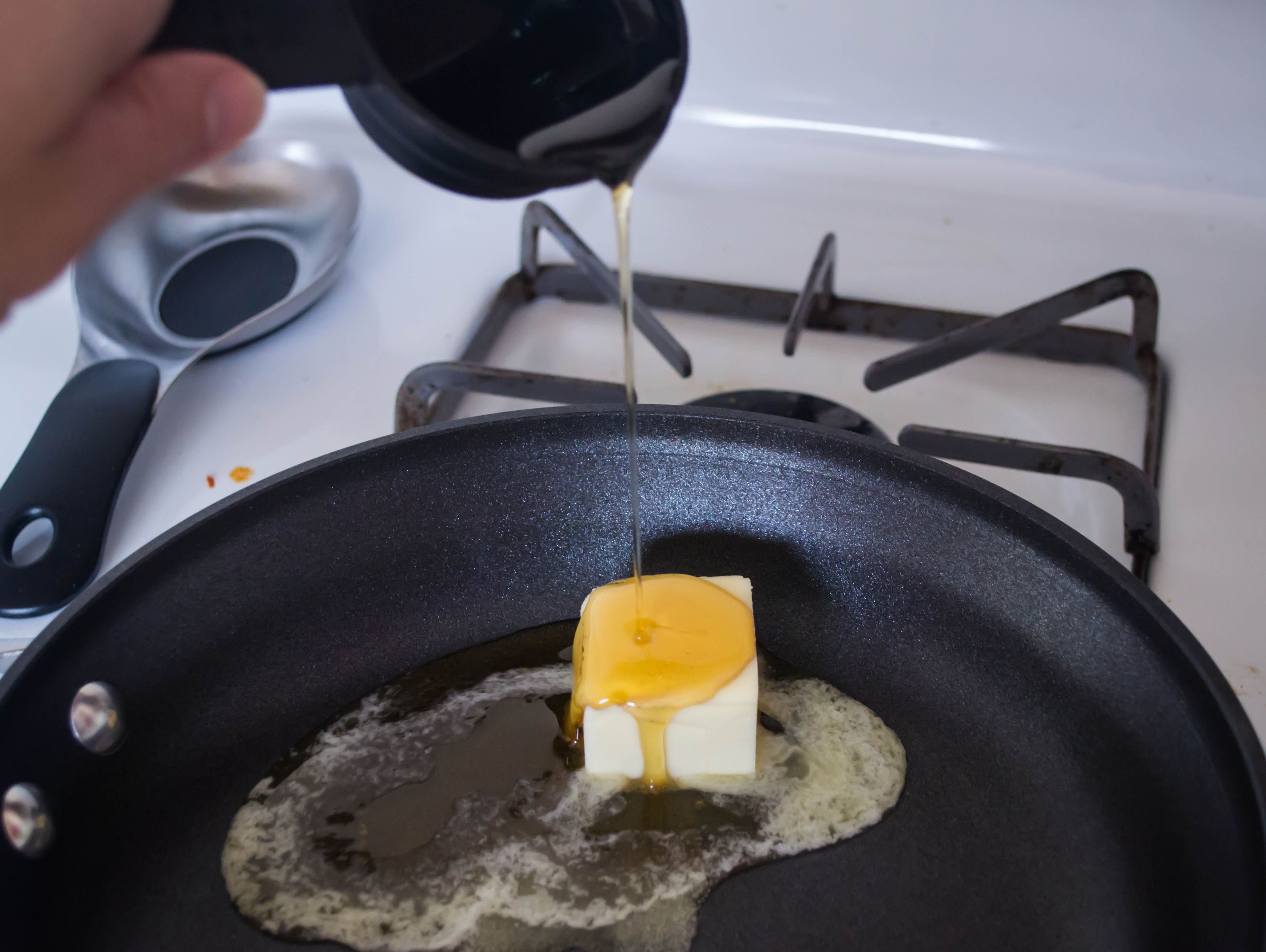 - Begin with the pomegranate molasses, as this takes the longest: pour the pomegranate juice into a small pot and boil over medium heat until you have only about 2 tablespoons left; 20-25 minutes. The juice will have a slightly thicker viscosity, and you’ll know it’s seconds from being done when the whole thing seems to be a frantic stack of bubbles. Set it aside to cool – it will thicken into a syrup. (You can also refrigerate overnight – see note above.)