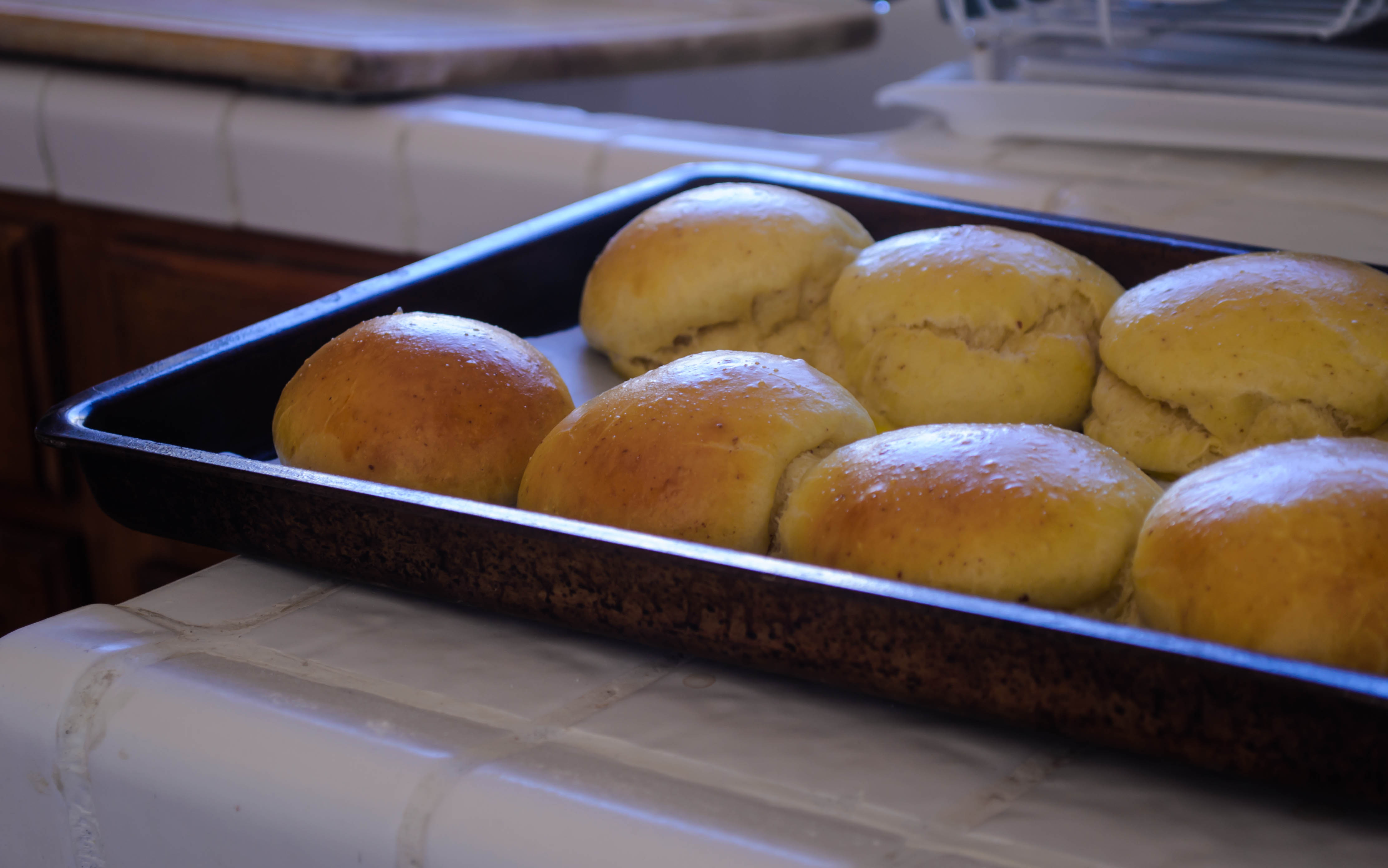 - When the loaf and the buns have nearly doubled, beat the final egg with the pinch of salt. Remove the plastic wrap and brush the loaves with the egg mixture. Set the pans in the oven (on the stone, if you’re using one), and bake until the tops are golden brown and the internal temperature registers 190F. This will take 18-20 minutes for the buns, and 35-45 minutes for the loaf. If you can remember, rotate the pans halfway through baking.